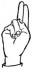 На ћирилици написано АНДРЕЈА ЧУПКОВИЋ састоји се из 15 слова [?]. Исписано ћириличном једноручном азбуком за глувонеме: